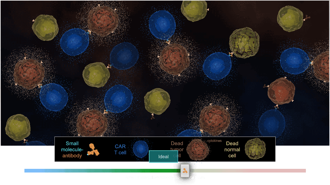 Selective: When small molecule-antibody conjugates bind to tumor cells, CAR T cells recognize the small molecules selectively associated with tumors.